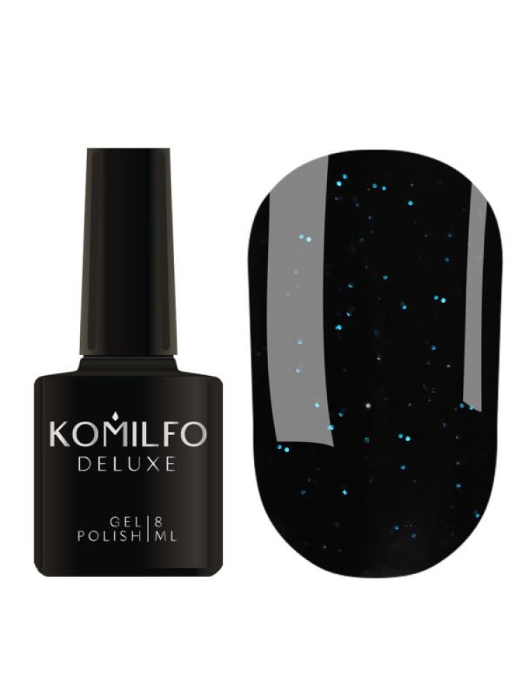 Komilfo  gēllaka  "Black Blue" no kolekcijas Black ir noslēpumains melns tonis ar bagātīgu zilu mirdzumu, radot dziļuma un noslēpuma sajūtu. Šis tonis ideāli piemērots vakara manikīram, akcenta dizainiem un stilīgai nagu mākslai. Pateicoties biezai konsistencei, gēllaka vienmērīgi klājas uz naga plātnes, nenotek un nodrošina blīvu pārklājumu jau no pirmās kārtas. Intensīvais pigments garantē piesātinātu krāsu un ilgstošu spīdumu.